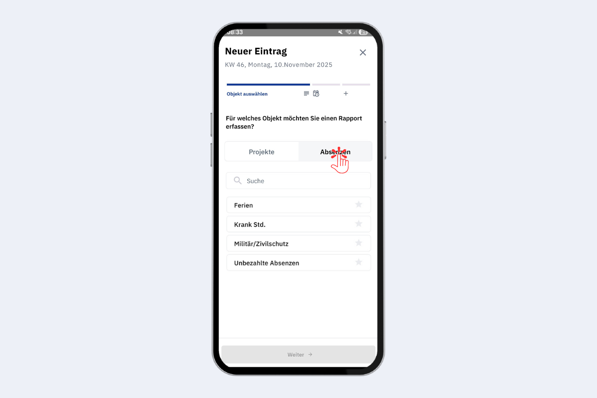 Mobile App – Absenz auswählen