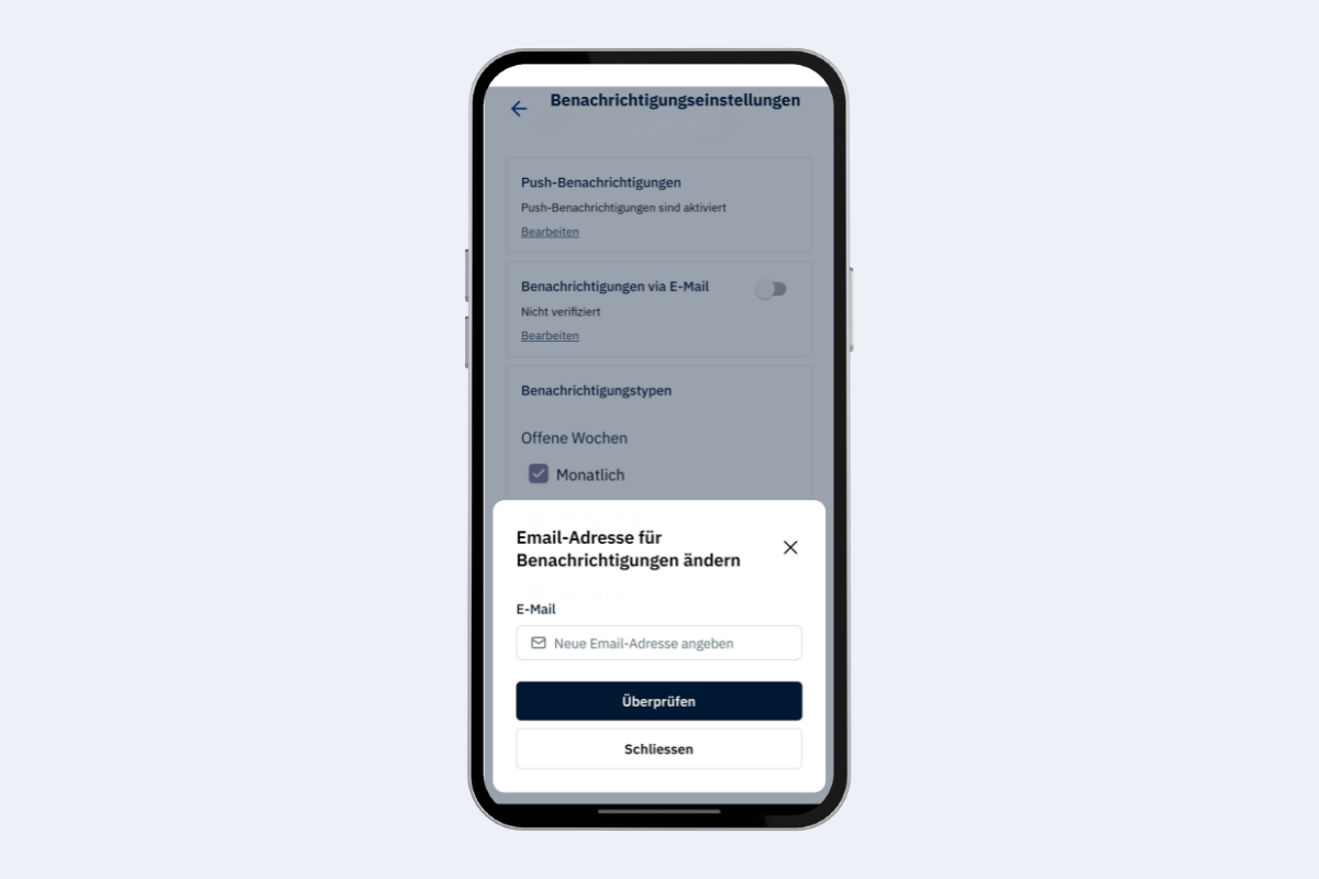 Mobile App – Benachrichtigungen: E‑Mail hinterlegen