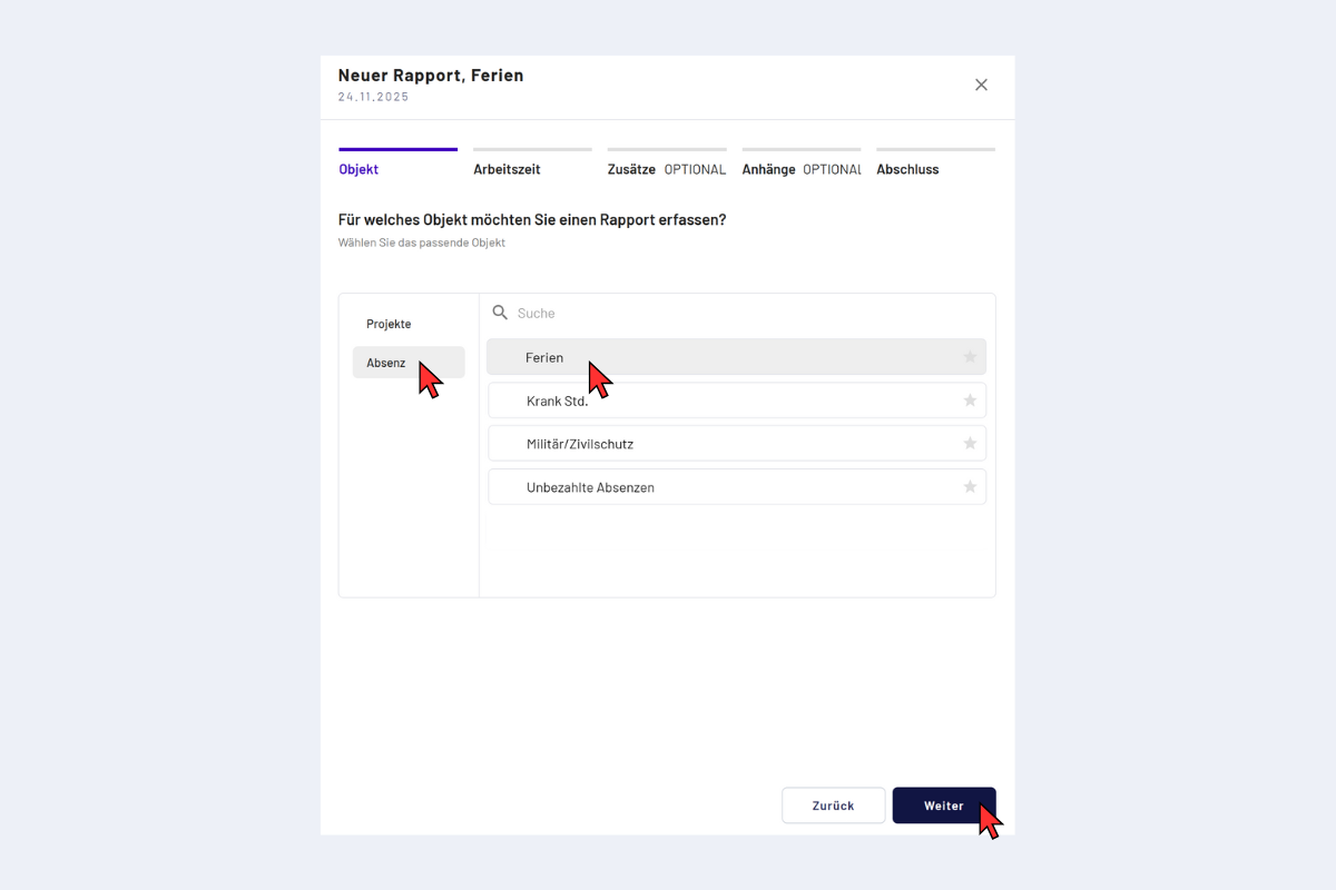So erfassen Sie Ferien, Krankheit und andere Abwesenheiten korrekt.