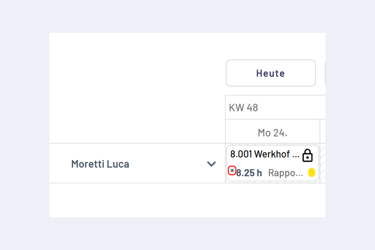 Ist im Rapport ein Stern sichtbar, weist das auf erfasste Zusätze hin (automatisch oder manuell).