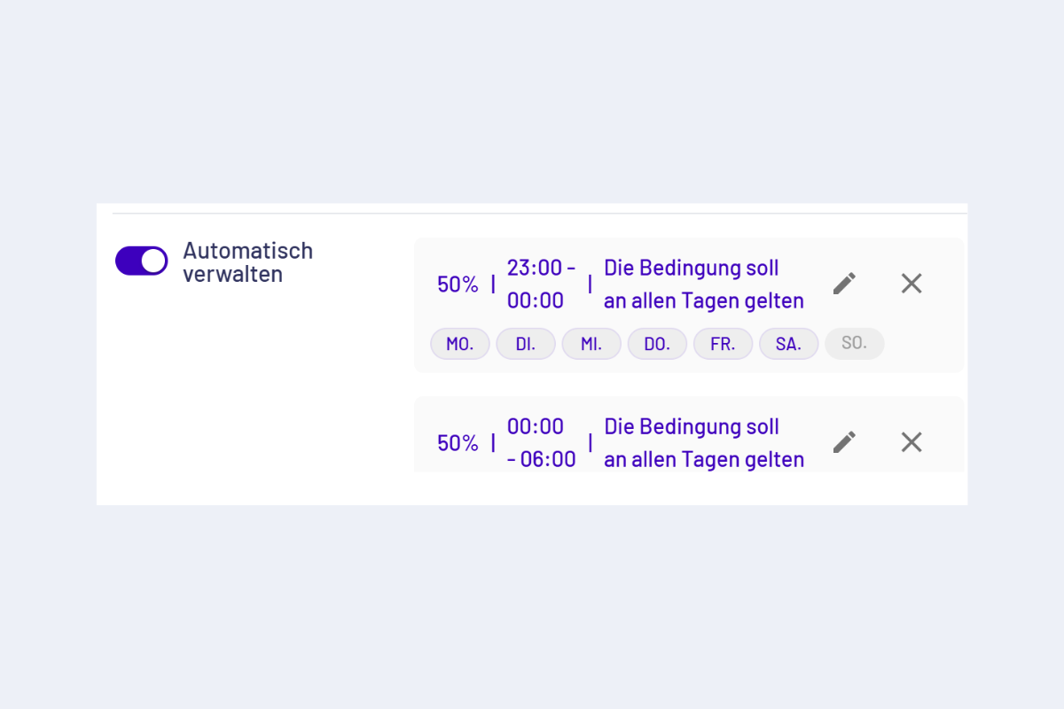 - Beim Erstellen oder Bearbeiten den Schalter «Automatisch verwalten» aktivieren.